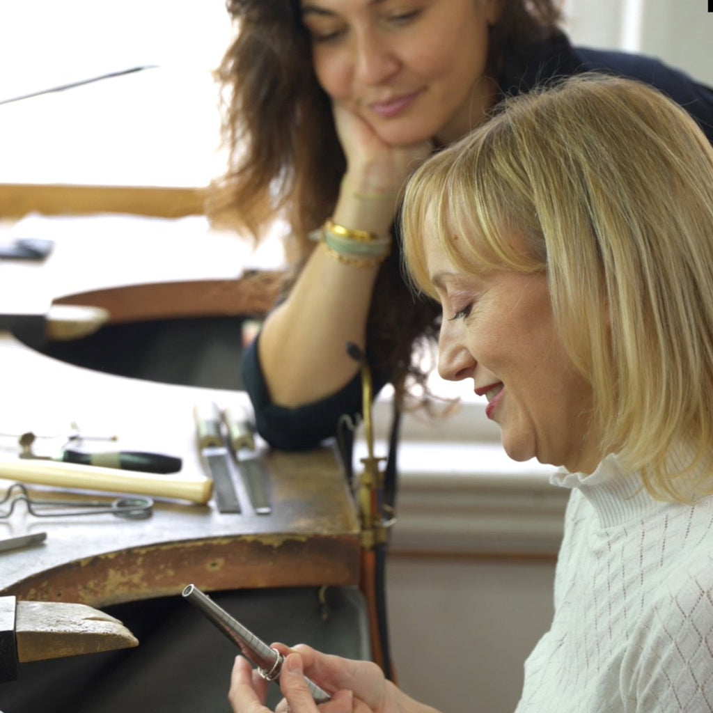 When our founder first experienced Hatton Garden 20 years ago, she faced secrecy, closed doors, prejudice and sexism. Persistence and a drive to enlighten the industry to the advantages of working with young designers saw those doors slowly open. There is still a way to go, but she is proud of the part she played in making Hatton Garden the more inclusive and knowledge-sharing place it is today.